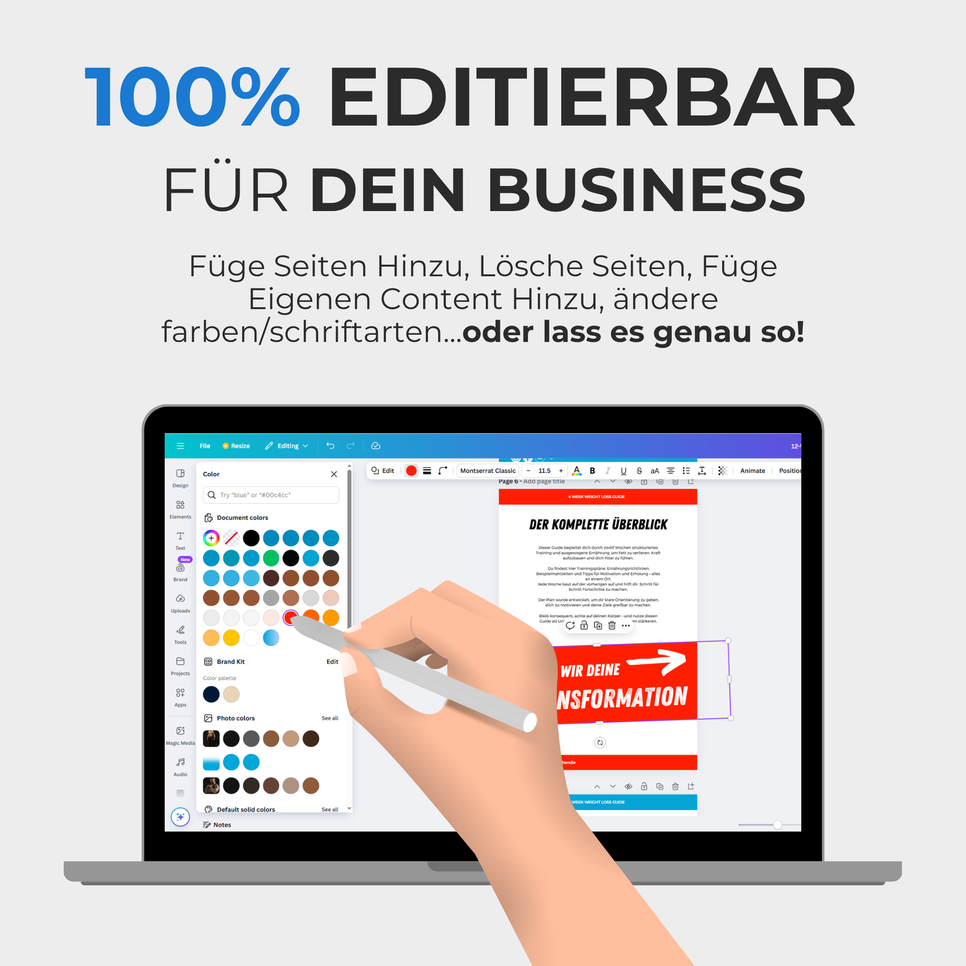 Ja, die Vorlage ist vollständig editierbar. Du kannst dein eigenes Logo, deine Farben, Schriftarten und Texte einfügen – und das Design an dein Coaching-Business anpassen.