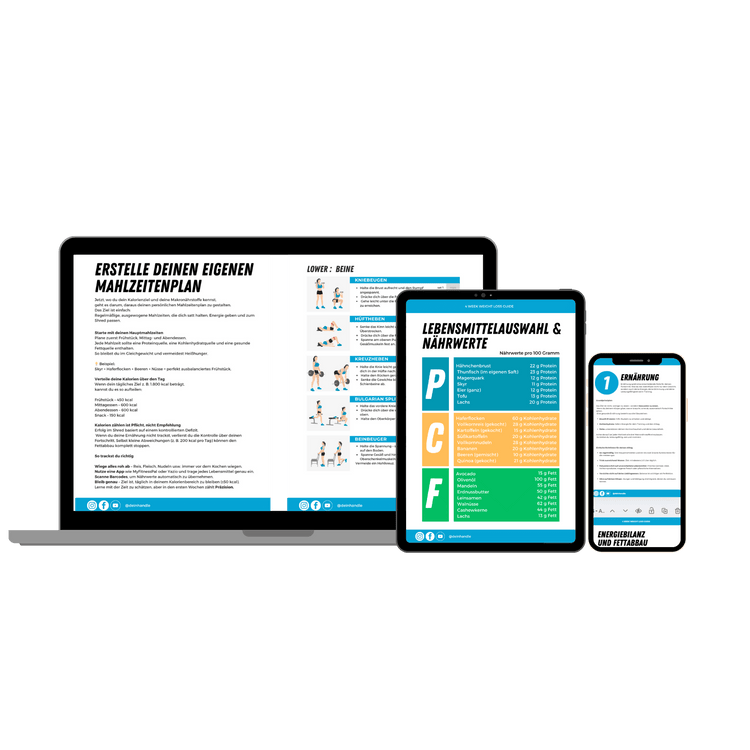 • Insgesamt 51 Seiten Premium-Content zu Körperzusammensetzung, Ernährung, Training, Supplementation & Erholung