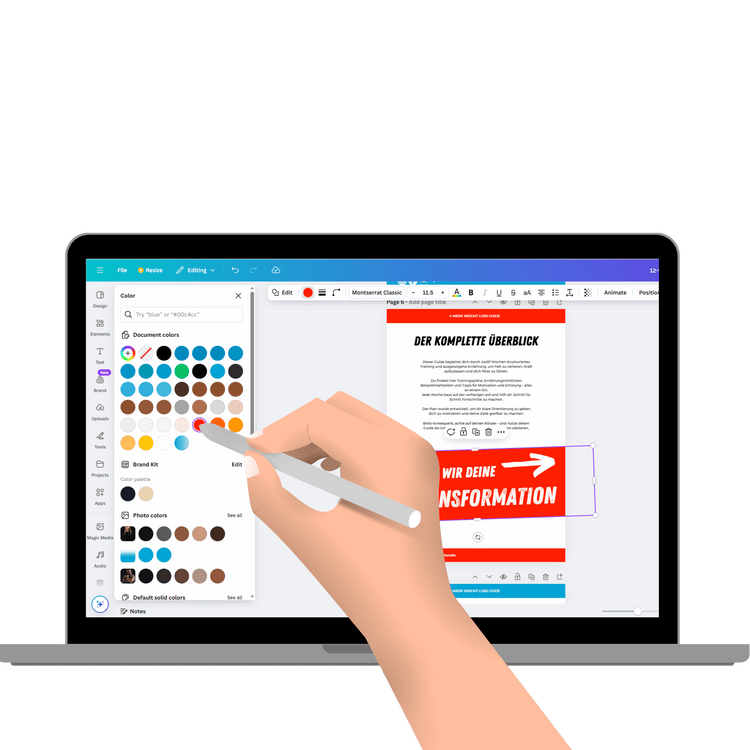 - In Canva öffnen und dein Branding, Texte, Farben & Logos einfügen
