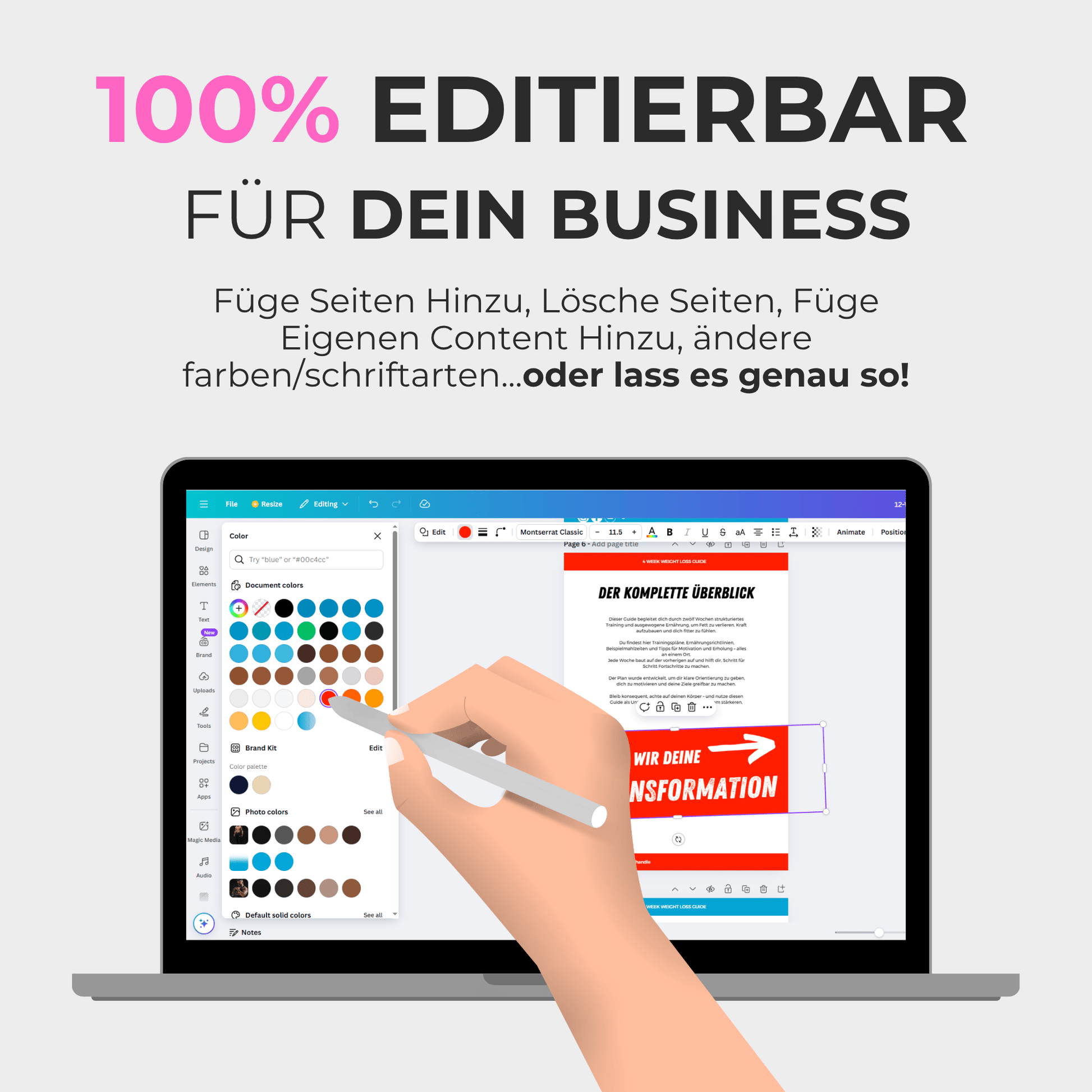 Ja, die Vorlage ist vollständig editierbar. Du kannst dein eigenes Logo, deine Farben, Schriftarten und Texte einfügen – und das Design an dein Coaching-Business anpassen.